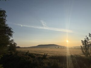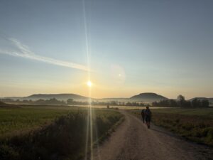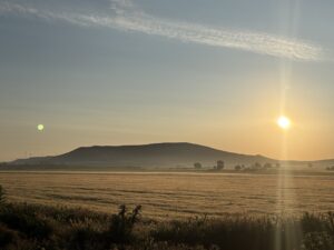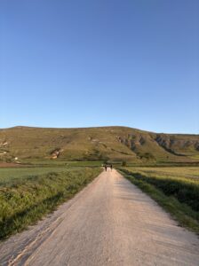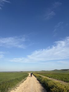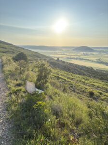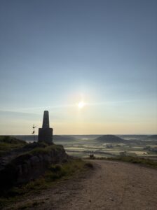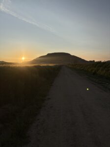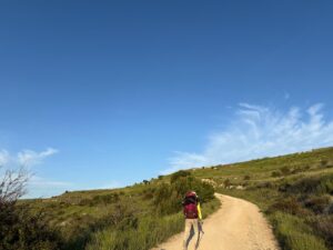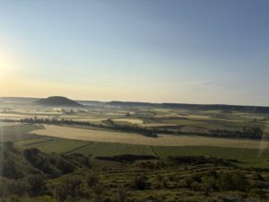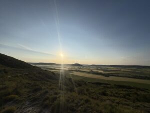 上から見る景色が最高すぎました。広い大地と朝の空気が漂う空、そして太陽。ずっと見ていたいくらい。しんどい思いをしてでも登る価値があります。私の中ではカミーノの中でピレネーに次いで好きな景色でした。