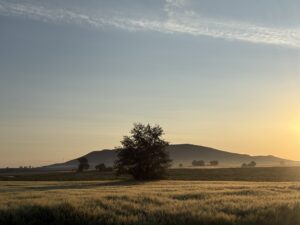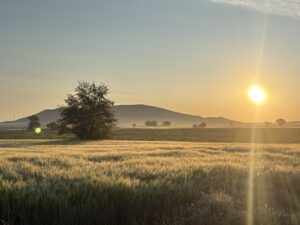 日が昇ってきて麦畑を照らします。シルバーに輝く麦畑。写真では伝えきれないほどの美しさ!