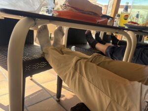 しばらく歩くとフードトラックがありました。もうすぐ町がありそうだったので、ここでは休憩せず、座って水分補給だけしてすぐに出発。次の町に到着し、道沿いにあるバルに入ることができました。コーヒーを注文しバナナとクッキーでエネルギー補給&トイレ休憩。まったり休んでから再出発です。