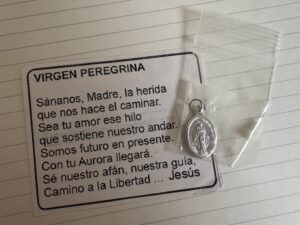 道中、見知らぬ男性に突然マリア様のメダイを渡されました。小さなジップに入ったメダイ。あまりに突然だったので断る間もありませんでした。不思議な人で、思わずジギと無言で顔を見合わせてしまいました。