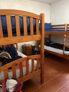 目指しているアルベルゲはバス停から歩いて町の反対側にあります。これ以上足を痛めないようゆっくり歩き、無事に到着。受付でチェックインしようとすると、もうベッドがないと言われてしまいました。受付表を除くと2名分空きがあります。ここはダメ?ときくと、ここは男性の部屋、女性の部屋はいっぱいなんだと言われました。そこでジギと、私たちは全く気にしない!これまでもずっと男女一緒だよ、ここでいいから泊めてほしい!と交渉するとOKがでました。よかった〜ここからまたアルベルゲ探しはさすがにしんどい。それにしても男女で部屋を分けているアルベルゲも珍しい。今まで毎日男女一緒なので、何も気になりません。笑
