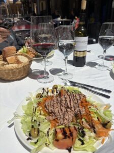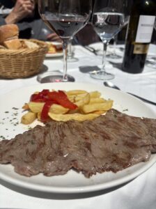 昼食のため、ジギとヤンと町へ。ピルグリノメニューを提供しているレストランへ。お天気だし外で食べようということになったけど、お天気すぎて白布が眩しかった。
