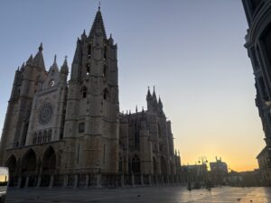 朝のレオンはとても静かで、朝焼けとレオン大聖堂が綺麗でした。