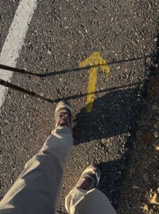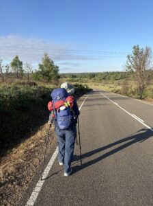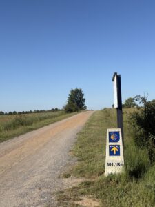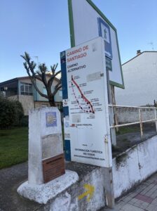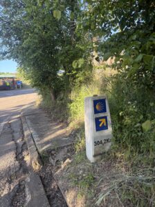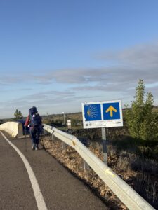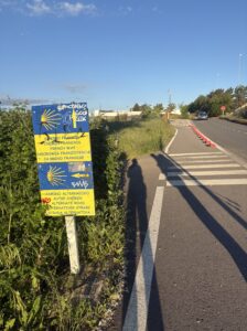 私たちは「左」を選択。この分かれ道がわかりにくく、こっちで合ってる?!と不安になりながら進みました。しばらくすると黄色い矢印を見つけたので合っていたようです。(ちなみに「右」はずっと道路沿いで景色が単調なのでつまらないそうです。カミーノ経験者は皆「左」を勧めたので左を選択しました。)