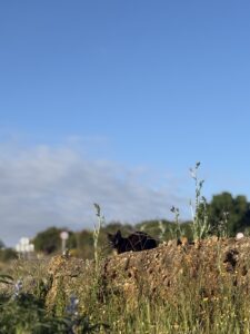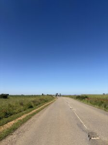 ようやく小さな町を通過。カフェはないのでベンチで休憩。バナナタイム。このあたりからようやく、ちらほらと歩いている人を見かけるようになってホッと一安心。町の出口でウサギ2匹を目撃!かわいかった〜。