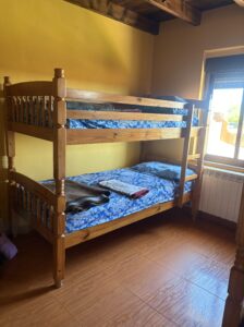 早速チェックイン。ヤンさんも同じアルベルゲでした。ジギと2人で泊まるとたいてい二段ベッドをひとつ充てられます。どちらで寝るかは自分たちで決めますが、ここは歳下の私が上段で!