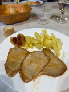 次の町に到着。地面に描かれたBARの文字に導かれ、バルへ。トルティーヤで腹ごしらえ。