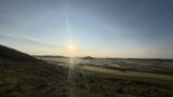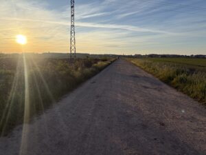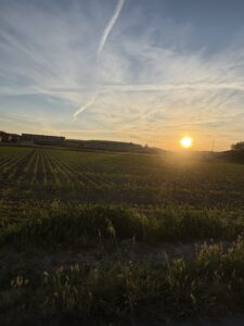 畑の中を通過。うしろをふりかえると美しい日の出。