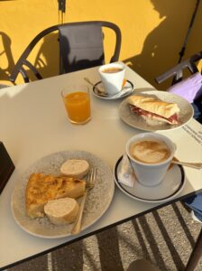 町の入り口にバルがあったので、ここで休憩することに。8:30で朝ごはん休憩に丁度良い時間です。