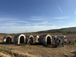遠くに建物が見えてきました。ドネーション型の休憩所で、巡礼者は皆そこへ吸い込まれるように入って行きます。
