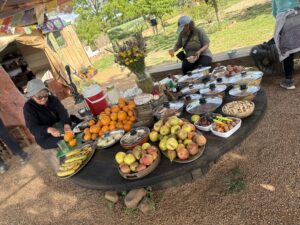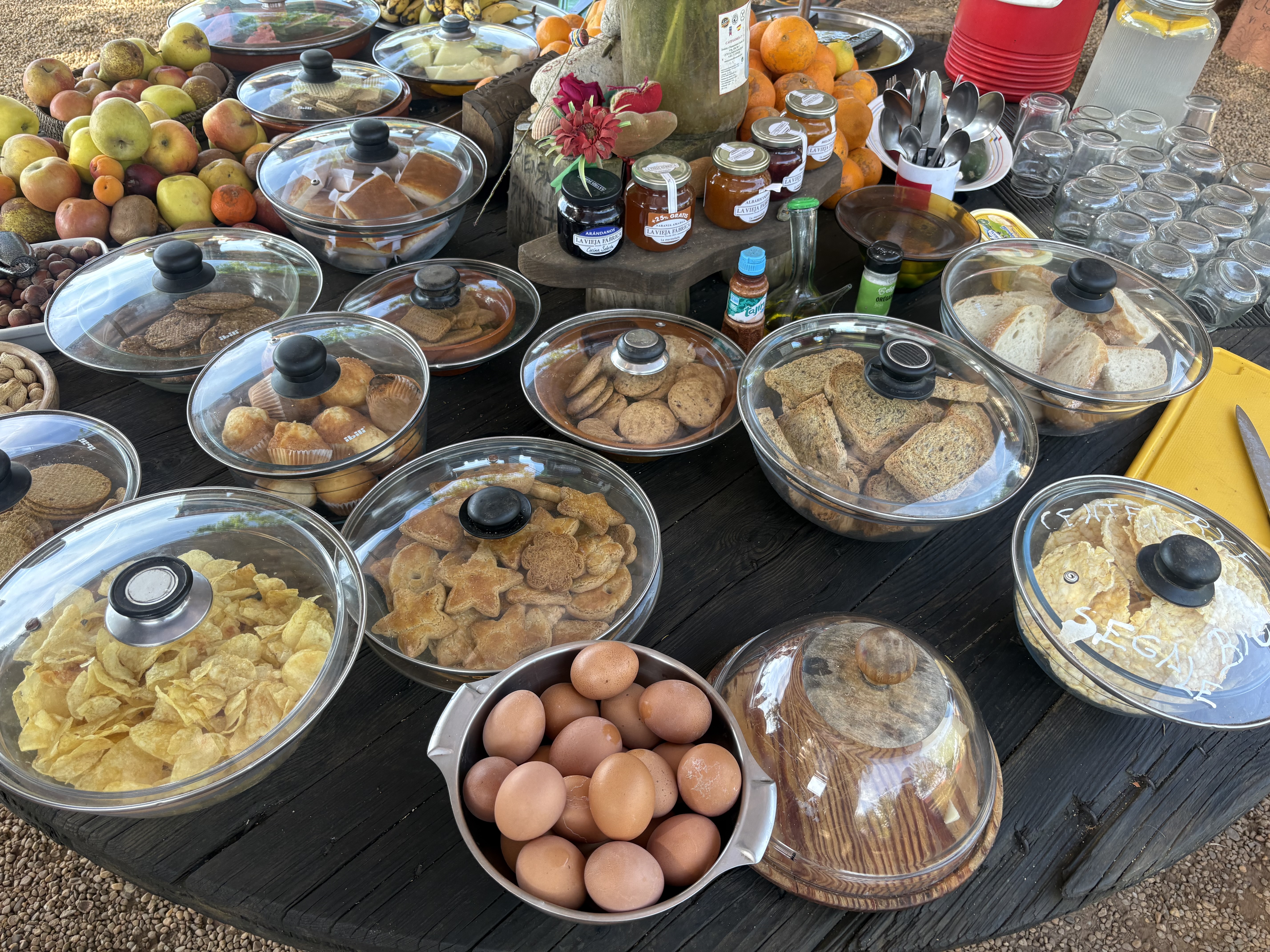飲み物、ヨーグルト、ゆで卵、パン、フルーツ、クッキー、ナッツ。とにかく大量の物が準備されていました。皆ここでまったり。ギターを弾いて歌っている人も。