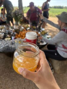 寄付だけで成り立っているこの休憩所。ボランティアとしてお手伝いしているイタリア人女性は、昨年カミーノを終え、この場所が私のいる場所だと思い、パートナーと一緒に戻ってきたそう。今はオーナーのおじいさんと裏の家で一緒に暮らしながら巡礼者のために毎日お手伝いをしているそう。時間をかけて花びらを干して、手作りのカレンデュラオイルも作っているそうです。すごいなぁ。