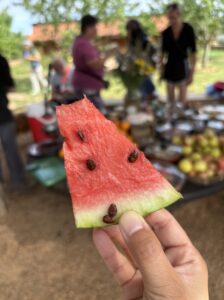 道の途中で背の高い男性が立ち止まっていました。追いつくと、私たちを待っていたと言います。「大きな野犬が3匹あそこの草むらにいたんだ!危ないから皆で一緒に行こう!」とのこと。じゃぁ皆で歩こうと、4人で草むらの横を通るも、何も出て来ず、無事に通過。実際に野犬が襲ってくることがあるそうで、彼はそれがとても怖いと言っていました。こういう時、ひとりじゃなくてよかったと実感します。