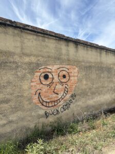 町をでてすぐ、またまた分かれ道です。私たちは右のルートを選択。(地面に、左😕、右☺️の落書きもありました。そりゃ☺️を選ぶよね。)