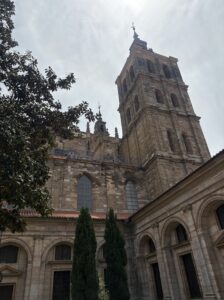 受付に入るも、あと20分で閉まるからもう受付ができない、夕方にまた来てください、と断られてしまいました。えーん、せっかくきたのに!かといって夕方からまた来る元気もありません。あきらめの早い私たち、気持ちを切り替えすぐ横にあるアストルガ大聖堂を見学することにしました。ガウディ建築は外から見れたから満足だよね〜と言って、写真だけとってアストルガ大聖堂へ向かいます。