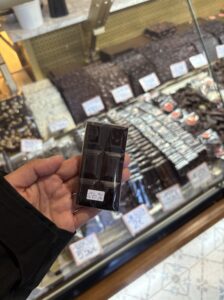 宿に戻る前に開いていたショコラティエに寄って記念にチョコレートを購入。本当はお土産にもっとチョコレートを買いたいけど、溶けてしまうので明日食べる分だけ購入。こういう時、小売りしているのがありがたい。