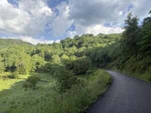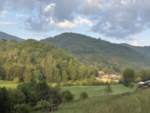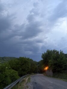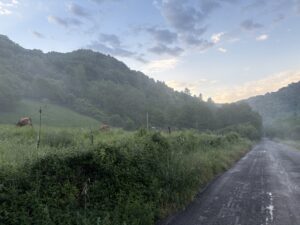 私もせっかくなのでエスプレッソを注文。6時になり、さぁ出発しようとするも、急な雷雨でピカピカ、ゴロゴロ。「最近とても暑いから、こうして雷になるんだよ」「すぐに止まるからここに居なさい」とオーナー。少し待つと、本当に雷が去って行きました。山の天気って不思議。