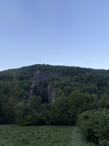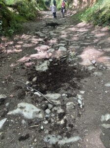 スタートから登り坂です。雷は去ったとはいえ、まだ空はピカピカ光っていて、向こうの方でゴロゴロ音が鳴り響いています。どんより曇り空、びびりながら雷雲を追いかけるように歩きはじめました。