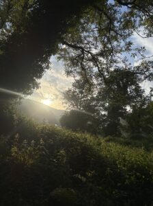 21時過ぎ、夕日が綺麗だよと聞いて外へ。こっちへきてから日の入りが遅いのでなかなか見るチャンスがなかったのですが、ここにきてこんなに綺麗な夕日が見られるなんて!皆で山に沈んでいく夕日を眺めて過ごしました。