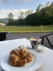 準備をして部屋を出ると、すでにバルがオープンしていました。オーナーは早起きだと聞いていたけど、本当に早い!巡礼者がコーヒーを飲みに立ち寄るので朝から開けているそうです。