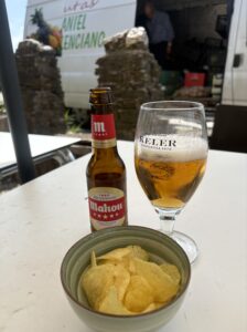 とりあえず荷物で順番をとってから、チェックイン時刻までバルで休憩することに。ビールを注文したらチップスもついてきました。わかってるね〜。