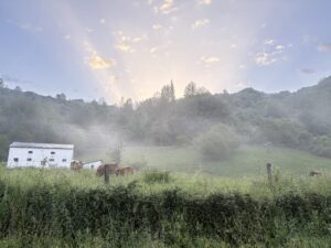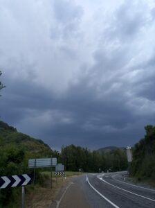 私もせっかくなのでエスプレッソを注文。6時になり、さぁ出発しようとするも、急な雷雨でピカピカ、ゴロゴロ。「最近とても暑いから、こうして雷になるんだよ」「すぐに止まるからここに居なさい」とオーナー。少し待つと、本当に雷が去って行きました。山の天気って不思議。