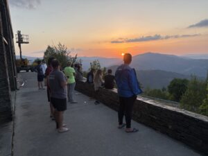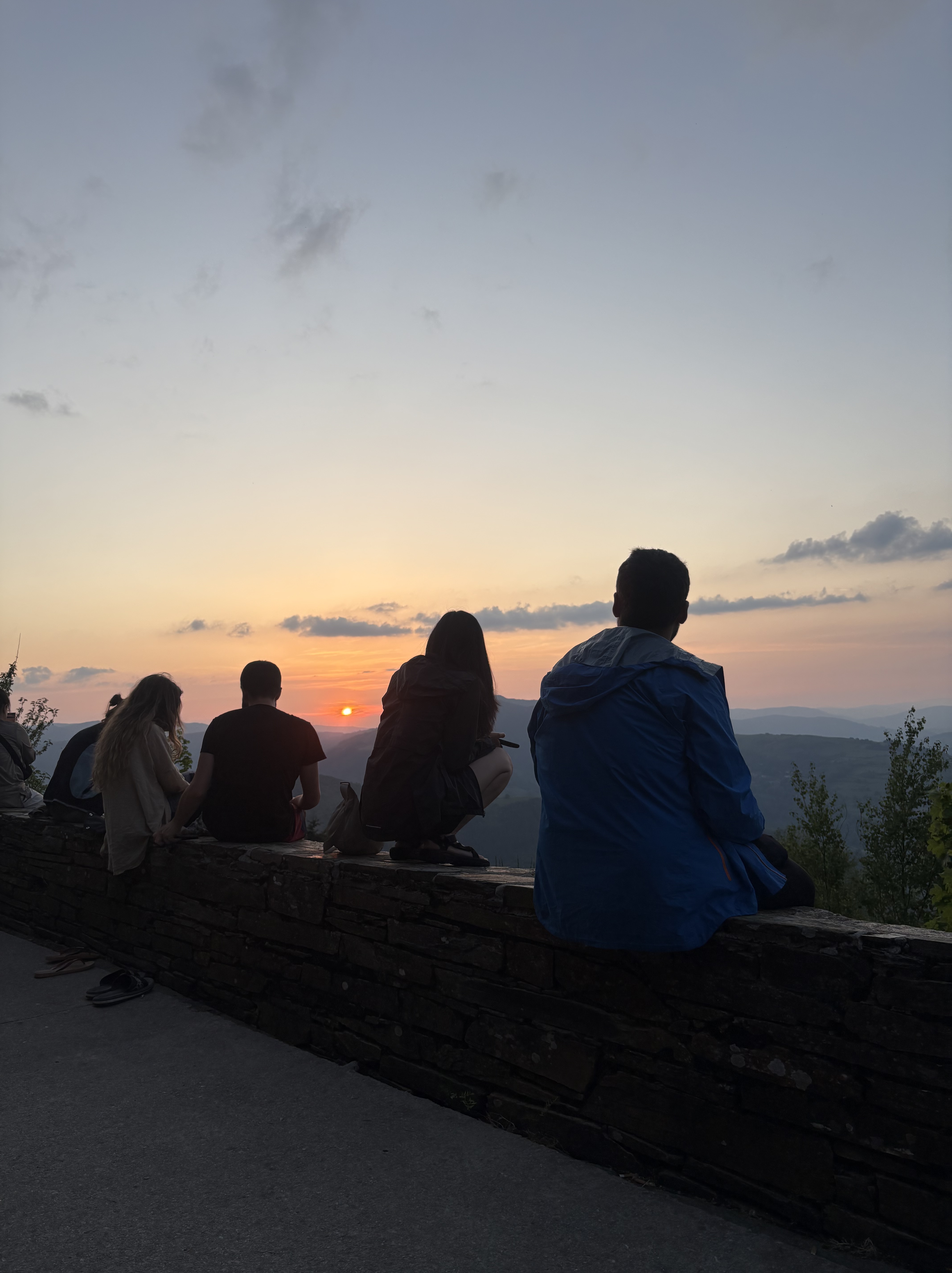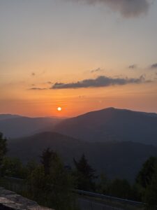 21時過ぎ、夕日が綺麗だよと聞いて外へ。こっちへきてから日の入りが遅いのでなかなか見るチャンスがなかったのですが、ここにきてこんなに綺麗な夕日が見られるなんて!皆で山に沈んでいく夕日を眺めて過ごしました。