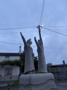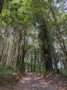 ジギとおしゃべりしながら歩きます。「昨日のアルベルゲはどうだった?」「ひとりで歩くのとグループで歩くのやっぱり違うよね」「サリアから少し雰囲気が変わったよね」「曇り続きだとなんだかね〜」「このあたりのにおいがいまいちだね」「ピレネー最高だったよね」とかとか。
