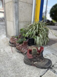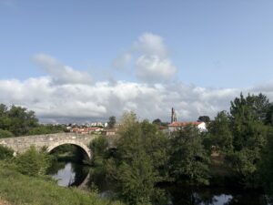 待ち合わせ場所を決めていなかったので、ここでよかったのかなと、とりあえずメッセージをしてアルベルゲの前で待機。宿のドアは閉まっているし、おそらく皆出発した後であまり人の気配もしません。しばらく待っているとジギと連絡がとれ、少し先のカフェにいるとのこと。すぐに出発し、カフェへ向かいます。