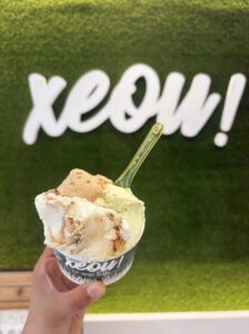 3フレーバーのカップを注文。人気のフレーバーを聞いて、イチジクジャム入りカッテージチーズ、アボカドwithレモン、もうひとつなんだったかな(たしかサンティアゴケーキ)をセレクト。おいしかった〜!!