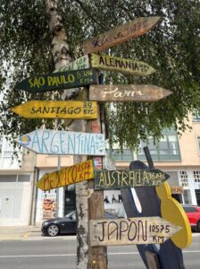 待ち合わせ場所を決めていなかったので、ここでよかったのかなと、とりあえずメッセージをしてアルベルゲの前で待機。宿のドアは閉まっているし、おそらく皆出発した後であまり人の気配もしません。しばらく待っているとジギと連絡がとれ、少し先のカフェにいるとのこと。すぐに出発し、カフェへ向かいます。