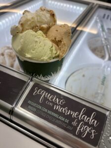 町ブラしながらアルベルゲへ向かいます。宿の近くのアイスクリーム屋さんに寄ってデザートタイム。お腹いっぱいだったけど、甘いものは別腹です。