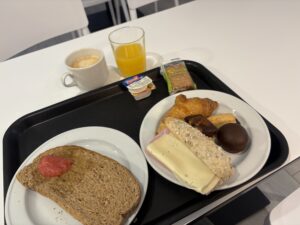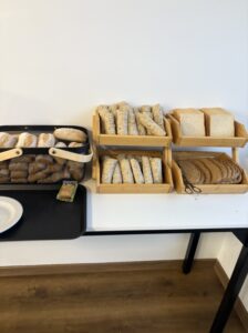 出発の準備をしてから朝ごはんを食べに食堂へ。エレベータがわかりにくくて迷っていたらロビーにいたおじさまが一緒に行ってくれました。7:15オープンの食堂に一番乗り。この旅で初めてのバイキング形式の朝食にテンションがあがりました。