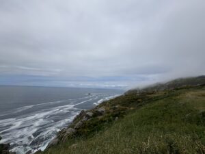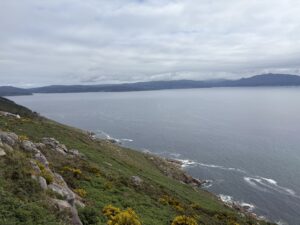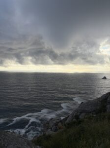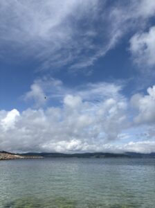 定刻通りに出発。バスは満席。自由席で、窓際をゲット。隣はイタリア人のアンジュロおじいさま。家族旅行で日帰りでフィステーラへ行くそうです。たくさん話しかけてくれましたが、英語ができないということで、スマホの翻訳機能を使っての会話。私はというと、大量の朝ごはん&荒い運転で完全にバス酔い。アンジュロさんには申し訳ないけど、酔うから文字は読めないと伝え、寝ました。