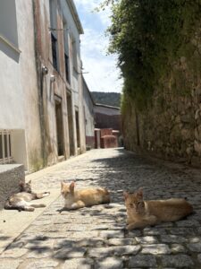 路地裏で気持ち良さそうにお昼寝している猫たち。