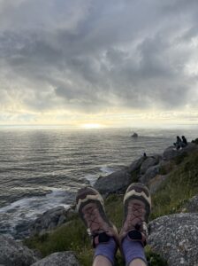 昔は巡礼を終えた人々がフィステーラで服や靴など持ち物を燃やす習慣があったそうです。今は燃やしてはいけませんが、こうして使い古した靴が置かれていました。