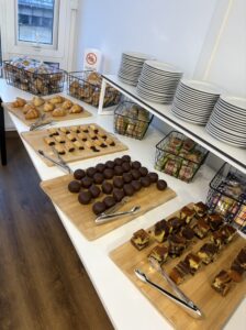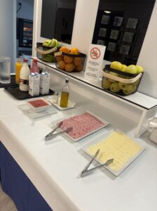 出発の準備をしてから朝ごはんを食べに食堂へ。エレベータがわかりにくくて迷っていたらロビーにいたおじさまが一緒に行ってくれました。7:15オープンの食堂に一番乗り。この旅で初めてのバイキング形式の朝食にテンションがあがりました。