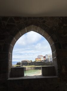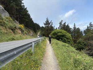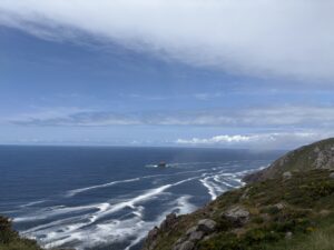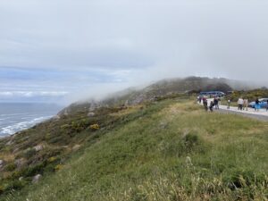 定刻通りに出発。バスは満席。自由席で、窓際をゲット。隣はイタリア人のアンジュロおじいさま。家族旅行で日帰りでフィステーラへ行くそうです。たくさん話しかけてくれましたが、英語ができないということで、スマホの翻訳機能を使っての会話。私はというと、大量の朝ごはん&荒い運転で完全にバス酔い。アンジュロさんには申し訳ないけど、酔うから文字は読めないと伝え、寝ました。