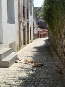 路地裏で気持ち良さそうにお昼寝している猫たち。