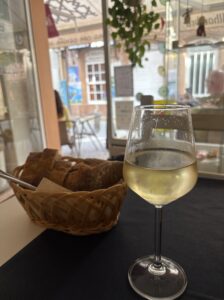 ということで早めディナーのため、さきほど散策しながら見つけておいたレストランへ。ずっと気になっていたマテ貝を注文。高いからなかなか手を出せなかったんだけど、せっかくなのでいただくことに。白ワインとパンが合うと言われたので、勧められるがままにいただく。