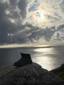 昔は巡礼を終えた人々がフィステーラで服や靴など持ち物を燃やす習慣があったそうです。今は燃やしてはいけませんが、こうして使い古した靴が置かれていました。
